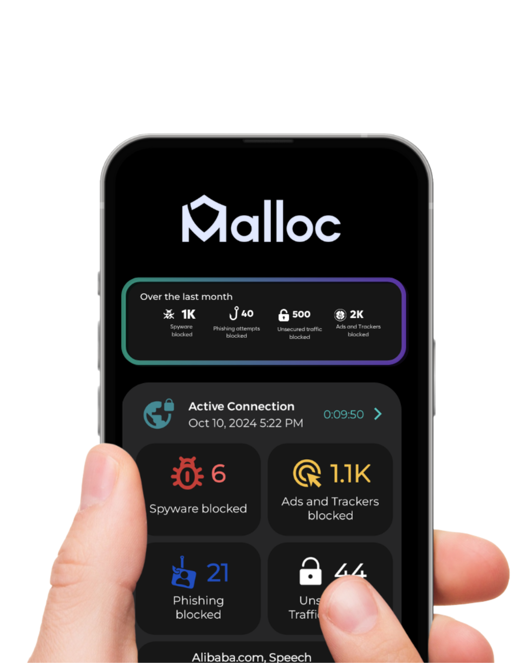 Apps silently gather your personal data, location, and behavior. Spyware and trackers can monitor what you do and who you talk to — without consent. Malloc reveals and stops those hidden intrusions.