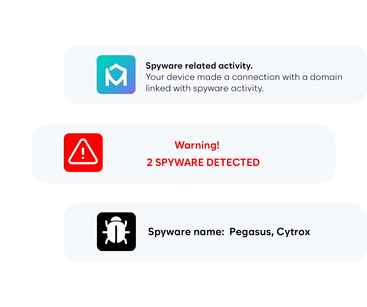 Malloc detects spyware based on indicators such as files created on your devices, processes running or networking activity.